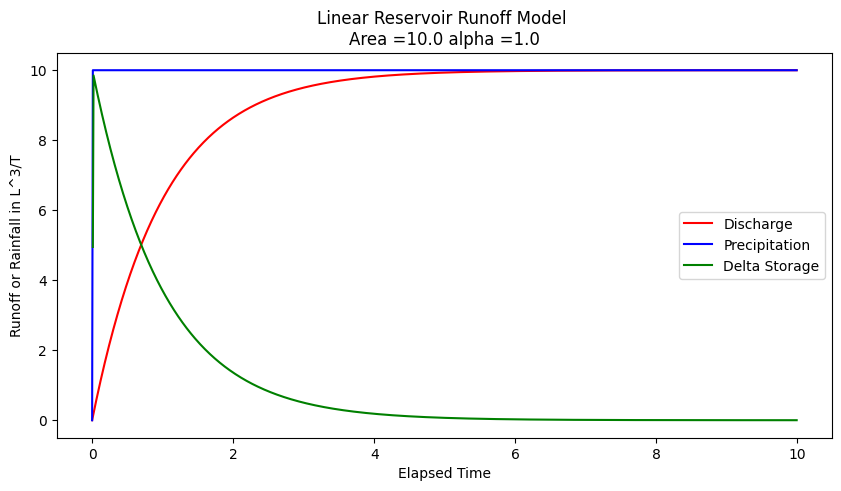 Conceptually the linear reservoir model employs the water budget for a watershed, and that discharge from the watershed is proportional to the current accumulated storage.