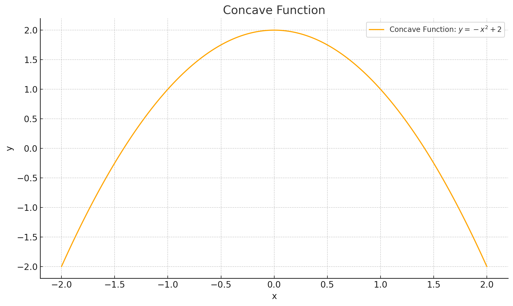 A function is concave function when a line joining any two points lies below the function The second derivative of a concave