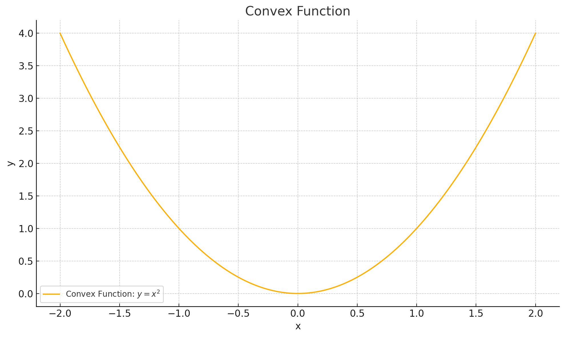 A function is said to be strictly convex when a line connecting any two points of the function lies strictly above the function